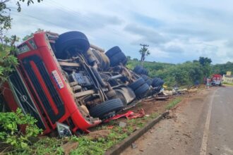 Uma carreta carregada com ração animal tombou na manhã desta quinta-feira (19/03) em uma curva…