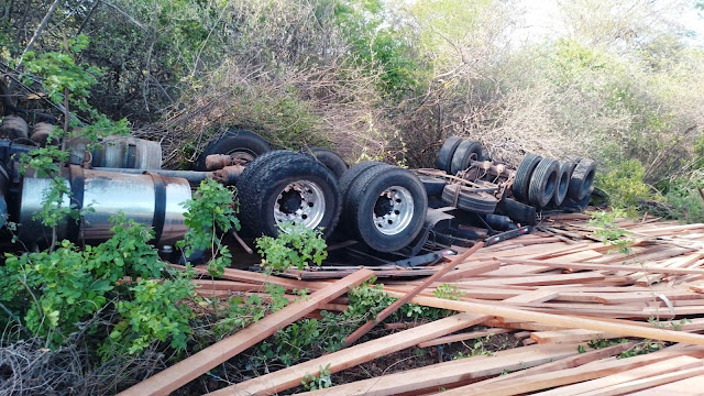 Na madrugada desta terça-feira (31/12), uma carreta carregada com madeira saiu da pista e capotou na BR-402, no litoral do Piauí. O acidente foi registrado por volta das 5h e está sendo investigado pela Polícia Rodoviária Federal (PRF).