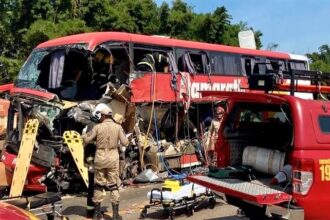 Um acidente entre um ônibus de viagem e uma carreta deixou ao menos 11 pessoas…