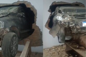 Um motorista em alta velocidade colidiu com o muro e invadiu a igreja Assembleia de…