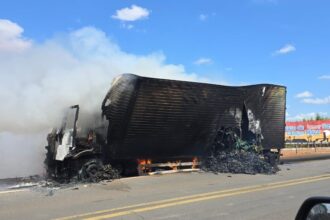 Um caminhão carregado com bananas ficou destruído ao pegar fogo na manhã desta sexta-feira (21),…