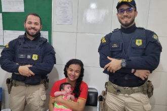 Um bebê de apenas um mês de vida foi salva de engasgo por agentes da…