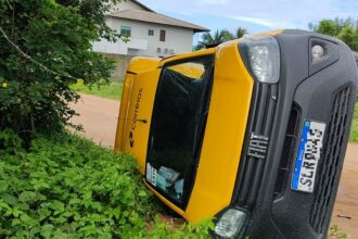 Um carro dos Correios, do modelo furgão, capotou após ser atingido em cheio por uma…