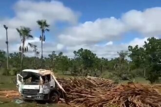 Um caminhão com carga de madeira tombou na tarda da última sexta-feira (01/03), na Curva…