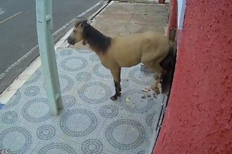 Um cavalo destruiu a coices as portas de vidro de uma clínica odontológica na manhã…
