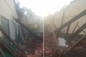 Parte do teto da Escola Municipal Raimundo Pastor da Silva, localizada na comunidade Banda, zona…