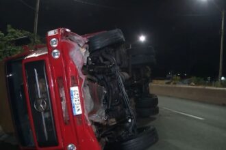 Um caminhão carregado com verduras tombou na BR-316, na altura do bairro Lourival Parente, Zona…