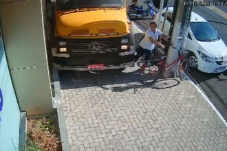Um ciclista saiu ileso após quase ser atropelado nesta segunda-feira (2) por um caminhão desgovernado…