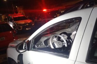 Uma viatura da Polícia Militar foi apedrejada logo depois que os policiais prenderam um homem…