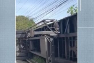 Uma carreta tombou na Rua D do Distrito Industrial, Zona Sul de Teresina, após o asfalto…