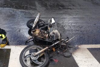 Duas motocicletas colidiram com um carro e uma delas pegou fogo na tarde desta sexta-feira…