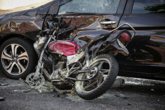 Um motociclista teve parte do corpo queimado em um acidente com um carro na Rua…
