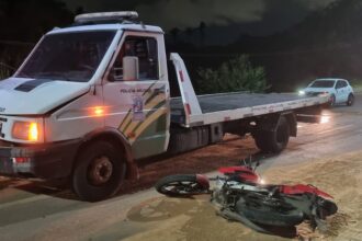 Um casal em uma moto foi atingido por um caminhão reboque na avenida Celso Pinheiro,…